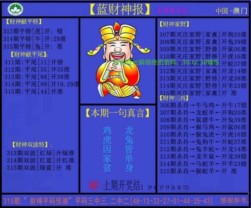 | 315期:两季中特→春肖冬肖←开:虎04准 |