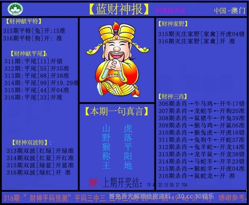 | 316期 | 羊 | 5尾 | 11合 | 马24 |