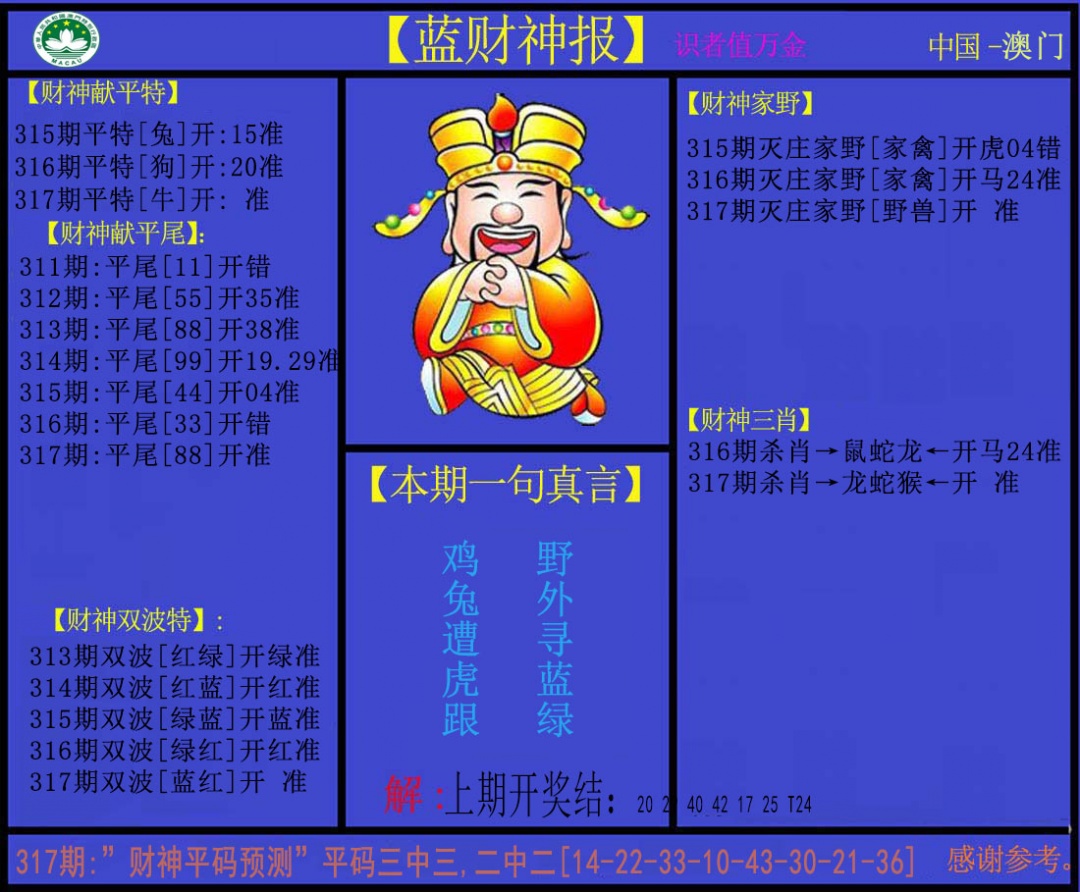 | 317期 | 虎 | 1尾 | 02合 | 鼠18 |